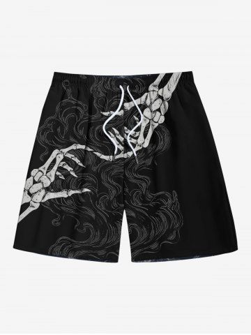 Shorts > Plus Size Skeleton Lovers Print Drawstring Pocket Beach Shorts For Men
