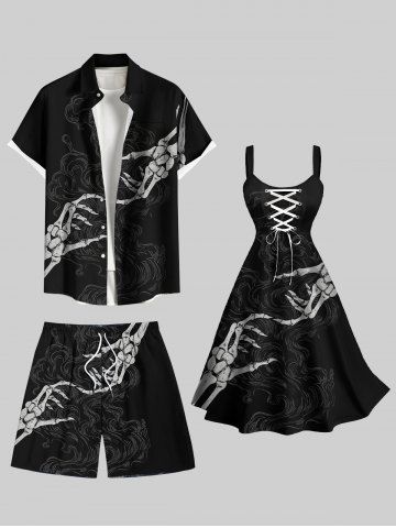 Plus Size Skeleton Lovers Print Drawstring Pocket Beach Shorts For Men - Black - 5xl