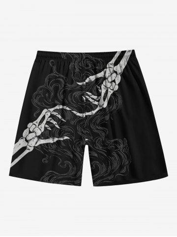Plus Size Skeleton Lovers Print Drawstring Pocket Beach Shorts For Men - Black - 6xl