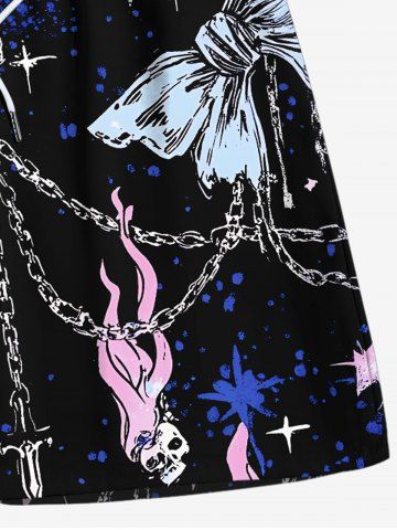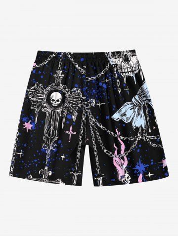 Plus Size Skull Fire Flame Cross Chain Print Hawaii Drawstring Beach Shorts For Men - Black - 5xl