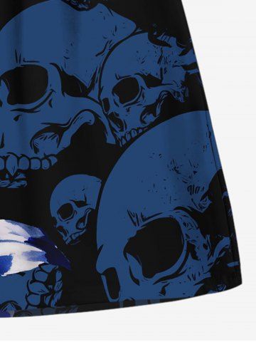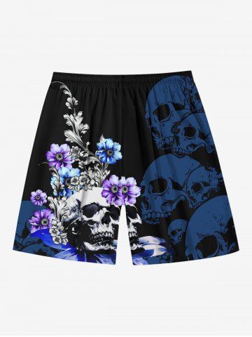 Plus Size Skull Flower Leaf Branch Print Hawaii Drawstring Pocket Beach Shorts For Men - Black - 6xl