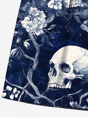 Plus Size Skull Flower Tree Branch Print Hawaii Drawstring Pocket Beach Shorts For Men - Black - 2xl