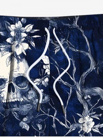 Shorts > Plus Size Skull Flower Tree Branch Print Hawaii Drawstring Pocket Beach Shorts For Men