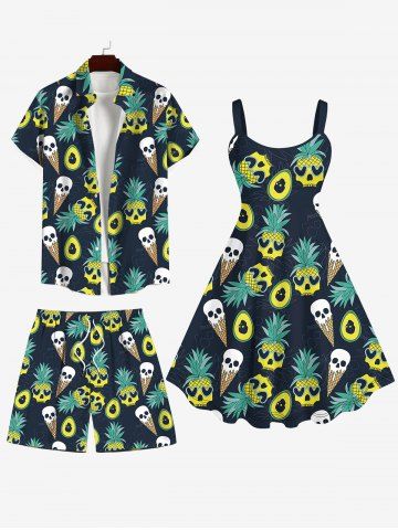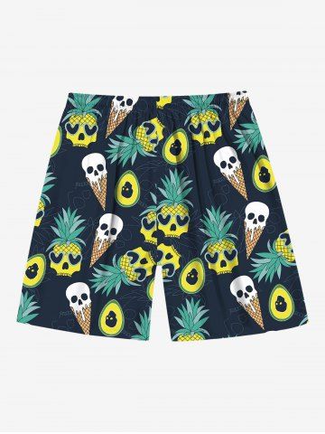 Shorts > Plus Size Skull Pineapple Avocado Ice Cream Print Hawaii Drawstring Beach Shorts For Men