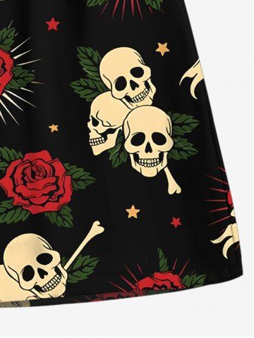 Plus Size Skull Rose Flower Heart Sword Print Halloween Drawstring Beach Shorts For Men - Black - M