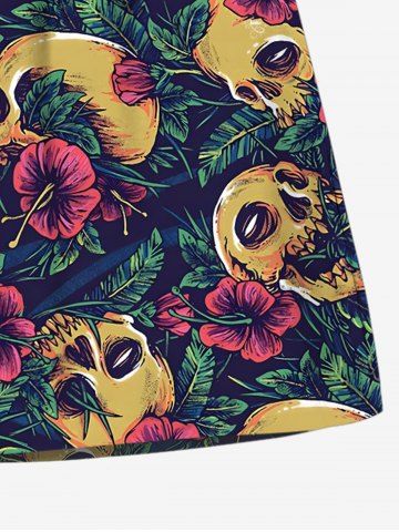 Plus Size Skull Tropical Leaf Hibiscus Flower Print Hawaii Drawstring Pocket Beach Shorts For Men - Blue - 6xl