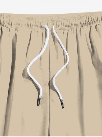 Plus Size Solid Drawstring Pockets Hawaii Beach Shorts For Men - Light Coffee - Xl