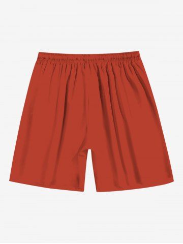 Plus Size Solid Drawstring Pockets Hawaii Beach Shorts For Men - Red - L