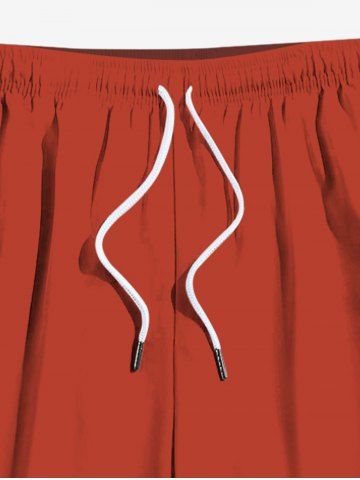 Plus Size Solid Drawstring Pockets Hawaii Beach Shorts For Men - Red - Xl