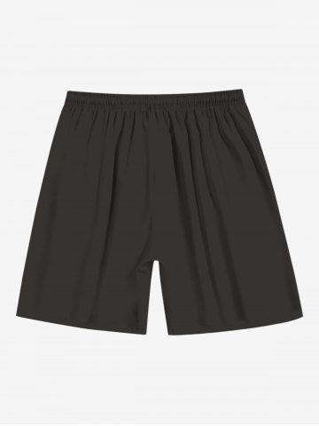 Plus Size Solid Hawaii Drawstring Pockets Beach Shorts For Men - Black - 8xl