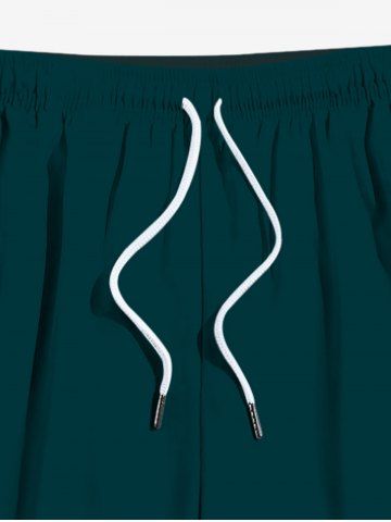 Plus Size Solid Hawaii Drawstring Pockets Beach Shorts For Men - Deep Green - 5xl