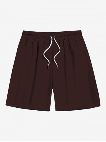 Plus Size Solid Hawaii Drawstring Pockets Beach Shorts For Men - Deep Coffee - M