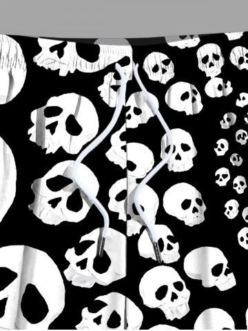 Plus Size Spiral Skull Print Halloween Drawstring Pocket Beach Shorts For Men - Black - L
