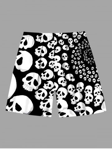 Plus Size Spiral Skull Print Halloween Drawstring Pocket Beach Shorts For Men - Black - 6xl
