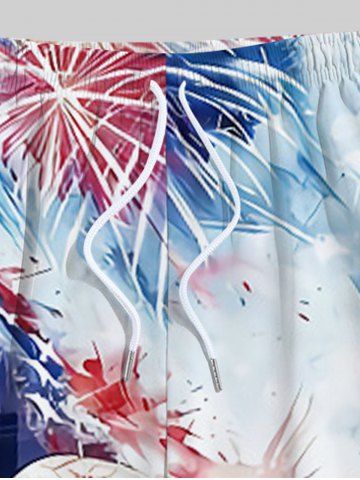 Plus Size Tie Dye Patriotic American Flag Fireworks Print Hawaii Drawstring Beach Shorts For Men - Multi-a - 6xl