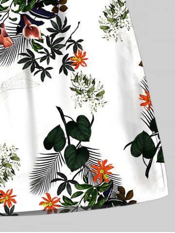 Plus Size Tropical Leaf Flower Print Hawaii Drawstring Beach Shorts For Men - White - M
