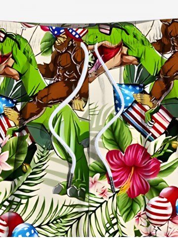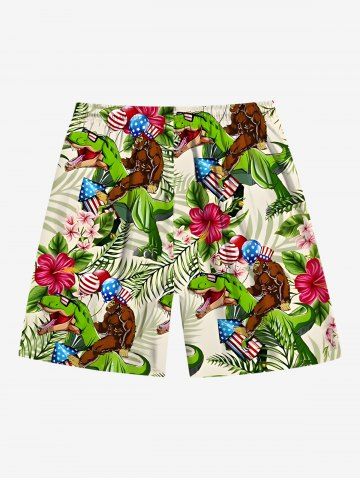 Plus Size Tropical Leaf Hibiscus Flower Dinosaur Gorillas Patriotic American Flag Balloon Print Hawaii Beach Shorts For Men - Green - 5xl