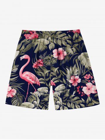 Shorts > Plus Size Tropical Leaf Hibiscus Flower Flamingo Print Hawaii Drawstring Pocket Beach Shorts For Men