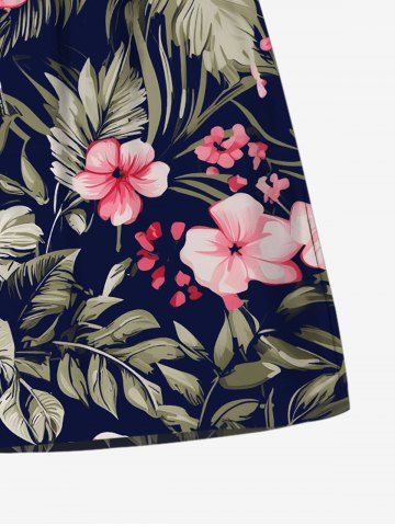 Shorts > Plus Size Tropical Leaf Hibiscus Flower Flamingo Print Hawaii Drawstring Pocket Beach Shorts For Men
