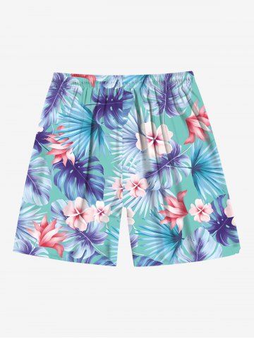 Shorts > Plus Size Tropical Leaf Hibiscus Flower Print Hawaii Drawstring Beach Shorts For Men