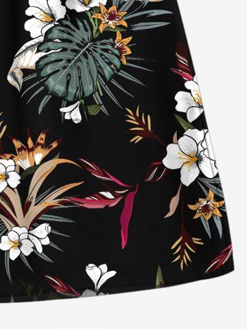 Plus Size Tropical Leaf Hibiscus Flower Print Hawaii Drawstring Beach Shorts For Men - Black - 2xl