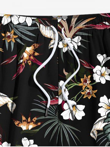 Plus Size Tropical Leaf Hibiscus Flower Print Hawaii Drawstring Beach Shorts For Men - Black - 8xl