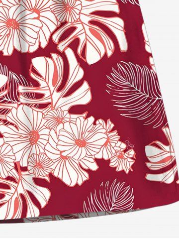 Plus Size Tropical Leaf Hibiscus Flower Print Hawaii Drawstring Pocket Beach Shorts For Men - Red - 5xl