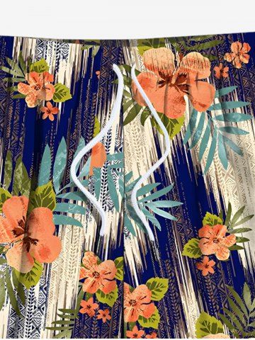 Shorts > Plus Size Tropical Leaf Hibiscus Flower Waves Print Hawaii Drawstring Pocket Beach Shorts
