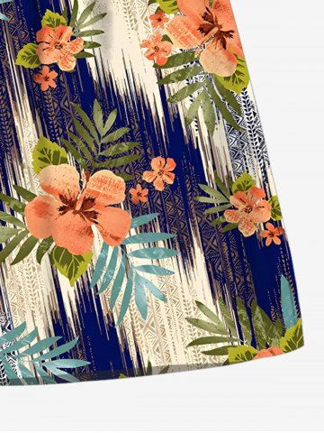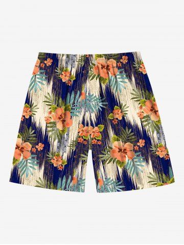 Shorts > Plus Size Tropical Leaf Hibiscus Flower Waves Print Hawaii Drawstring Pocket Beach Shorts