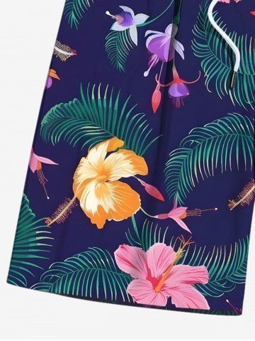 Shorts > Plus Size Tropical Leaves Floral Print Hawaii Drawstring Beach Shorts For Men