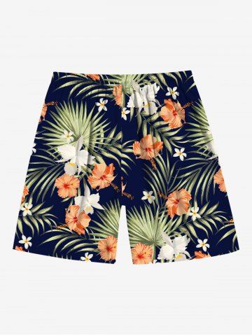 Shorts > Plus Size Tropical Leaves Hibiscus Floral Print Hawaii Drawstring Beach Shorts For Men