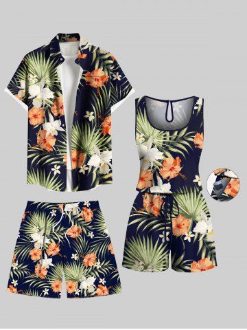 Shorts > Plus Size Tropical Leaves Hibiscus Floral Print Hawaii Drawstring Beach Shorts For Men