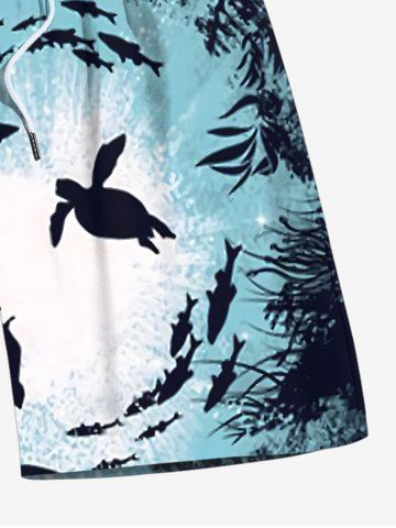 Plus Size Turtle Shark Seabed Print Hawaii Sea Creatures Drawstring Beach Shorts For Men - Light Blue - 4xl