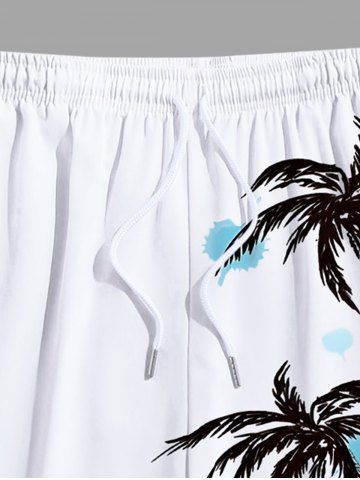Plus Size Watercolor Sea Coconut Tree Print Hawaii Drawstring Beach Shorts For Men - White - 6xl