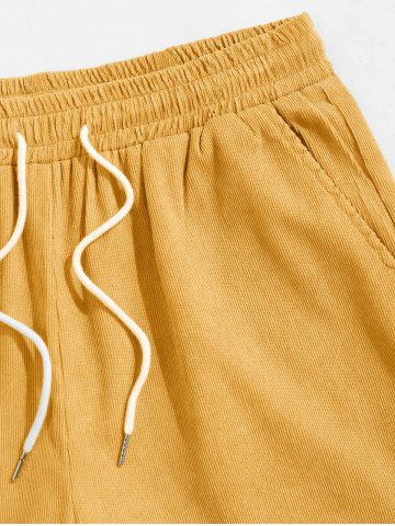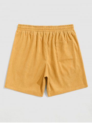 Pocket Plain Corduroy Textured Shorts - Dark Orange - M