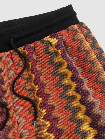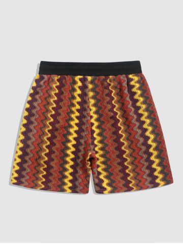 Rib Waist Zigzag Striped Drawstring Ethnic Casual Knitted Shorts - Deep Red - Xl