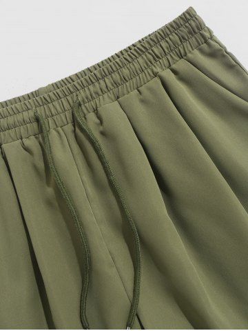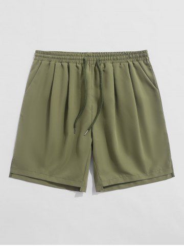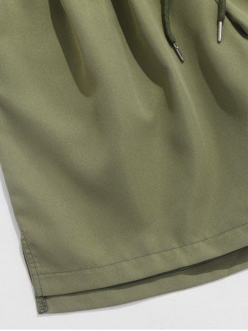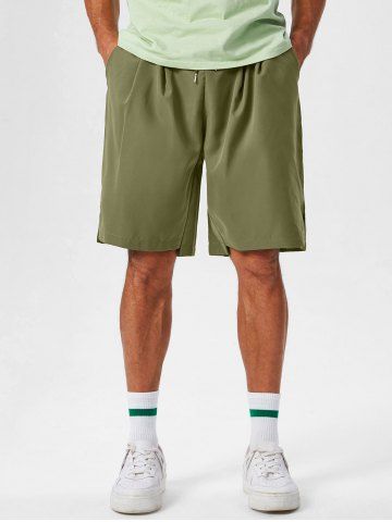 Side Slit Plain Vacation Bermuda Shorts - Deep Green - L