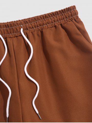Solid Color Basic Casual Shorts - Lava Red - L