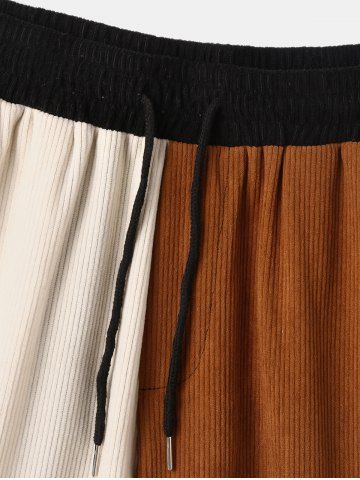 Shorts > Two Tone Colorblock Corduroy Drawstring Shorts