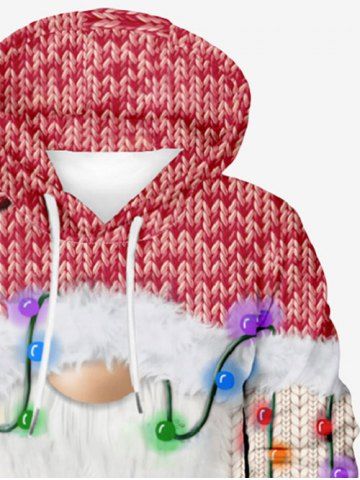 Plus Size 3D Cable Knit Textured Santa Claus Coloured Lantern Print Christmas Pocket Drawstring Pullover Hoodie For Men - Multi-a - 7xl