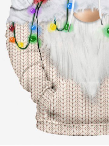 Men's Clothing > Plus Size 3D Cable Knit Textured Santa Claus Coloured Lantern Print Christmas Pocket Drawstring Pullover Hoodie For Men
