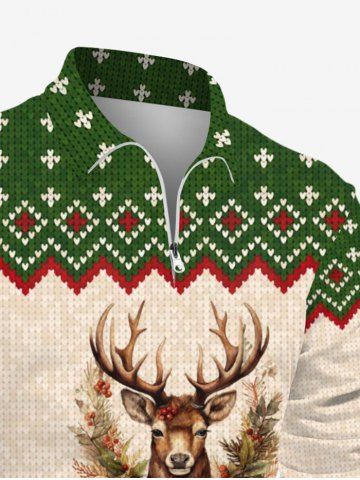 Plus Size 3D Knit Christmas Tree Elk Zig Zag Print Zipper Polo Shirt For Men - Apricot - Xl