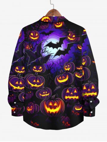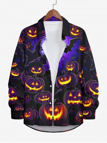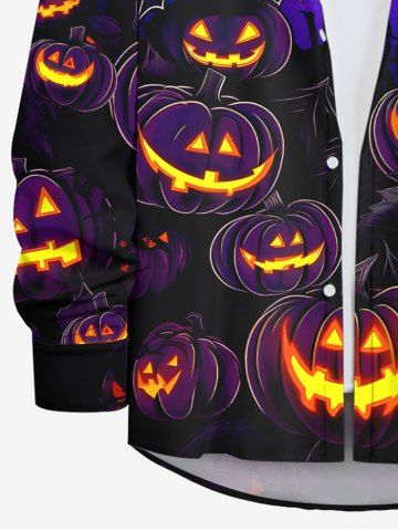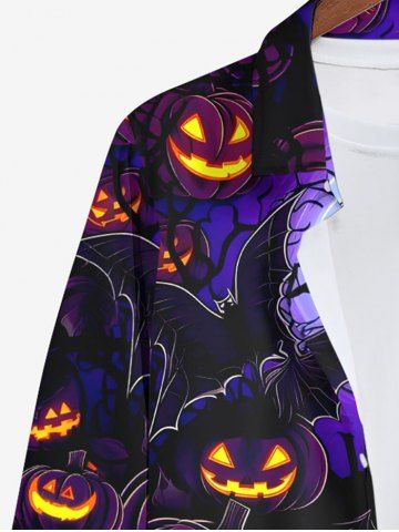Plus Size Bat Glitter Pumpkin Lantern Tree Moon Print Ombre Halloween Button Shirt For Men - Black - 5xl