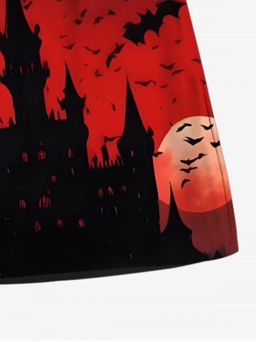 Plus Size Bat Moon Castle Print Halloween Ombre Drawstring Beach Shorts For Men - Red - Xl