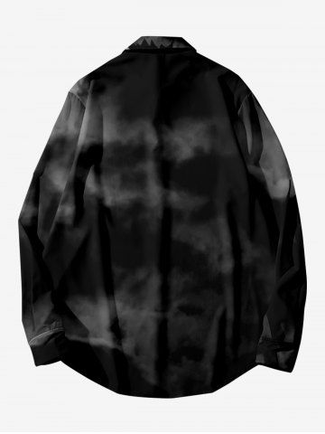 Plus Size Bat Moon Ombre Midnight Print Halloween Button Shirt For Men - Black - 7xl