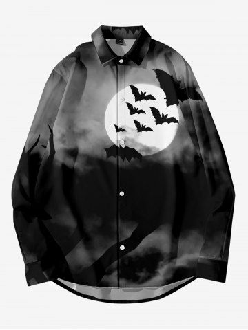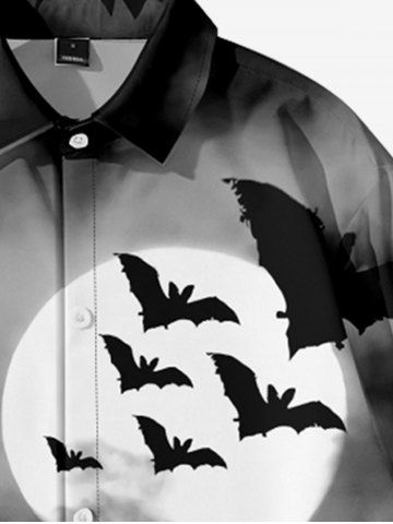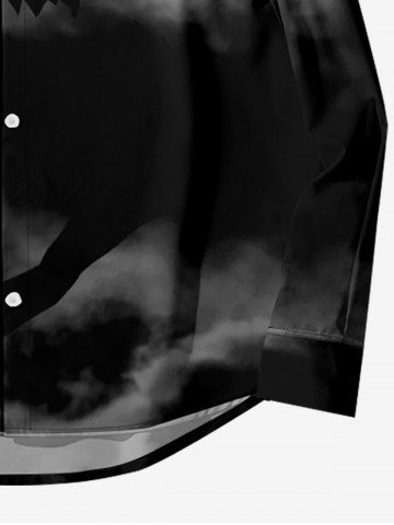 Plus Size Bat Moon Ombre Midnight Print Halloween Button Shirt For Men - Black - 8xl