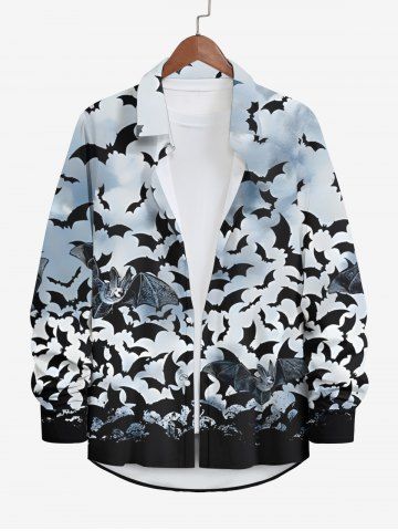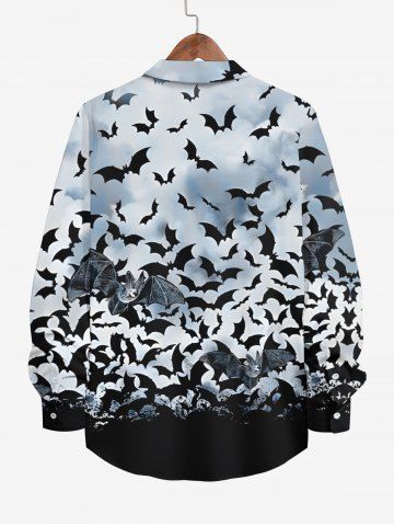 Plus Size Bat Ombre Sky Print Halloween Button Shirt For Men - Multi-a - 4xl