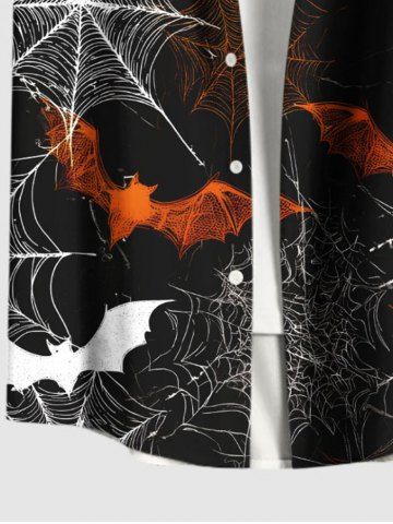 Men > Plus Size Bat Spider Web Print Halloween Button Pocket Shirt For Men