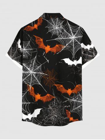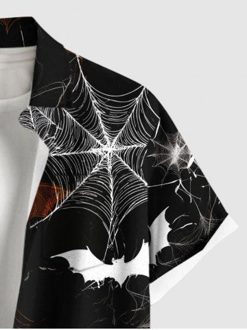 Plus Size Bat Spider Web Print Halloween Button Pocket Shirt For Men - Black - Xl