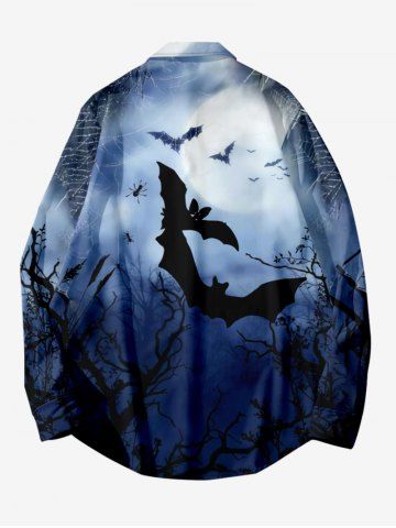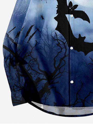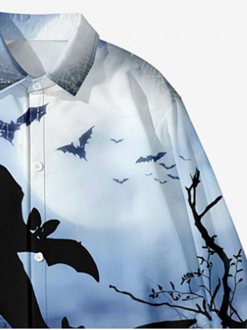 Plus Size Bat Tree Moon Ombre Galaxy Print Halloween Button Shirt For Men - Blue - 6xl